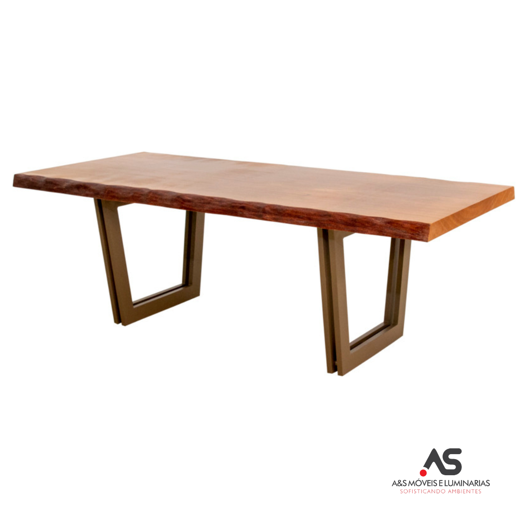 | Mesa de Jantar com estrutura em alumínio revestido com pintura eletrostática e tampo em madeira maciça |
